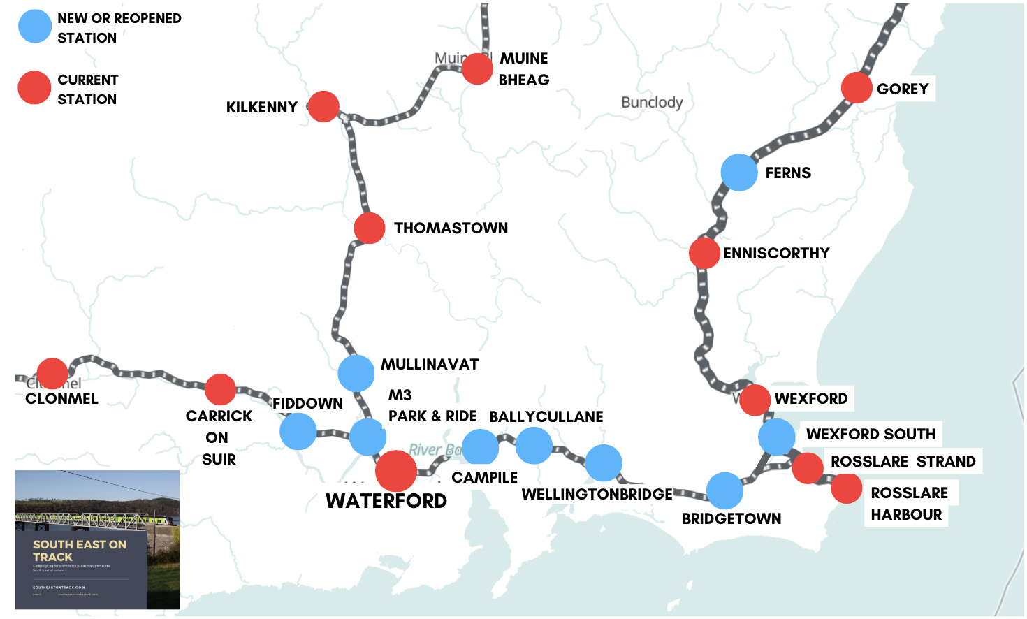 Medium Term: Regular service from Wexford to Waterford in both directions - support the reopening stations in Bridgetown, Wellingtonbridge, Ballycullane and Campile.